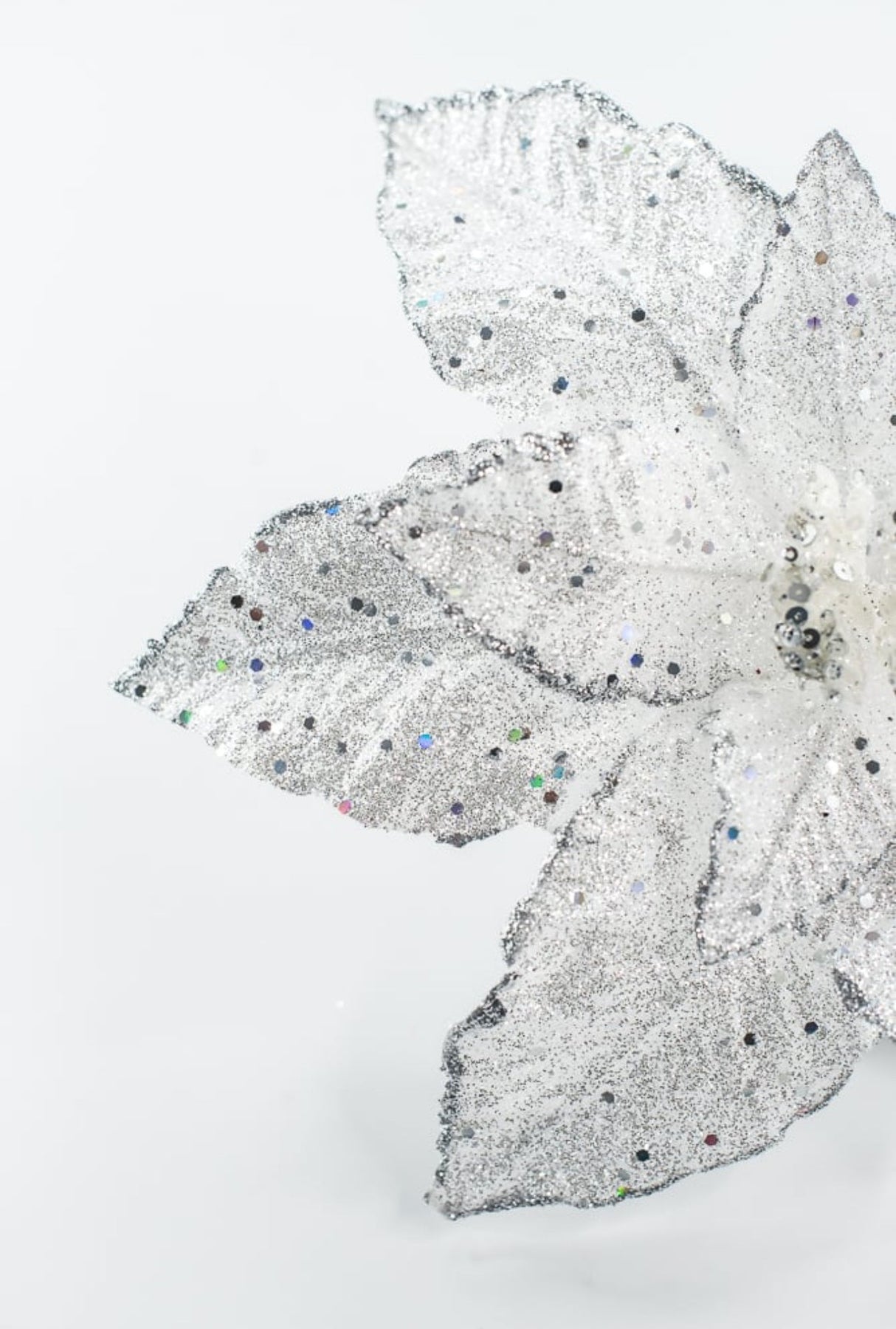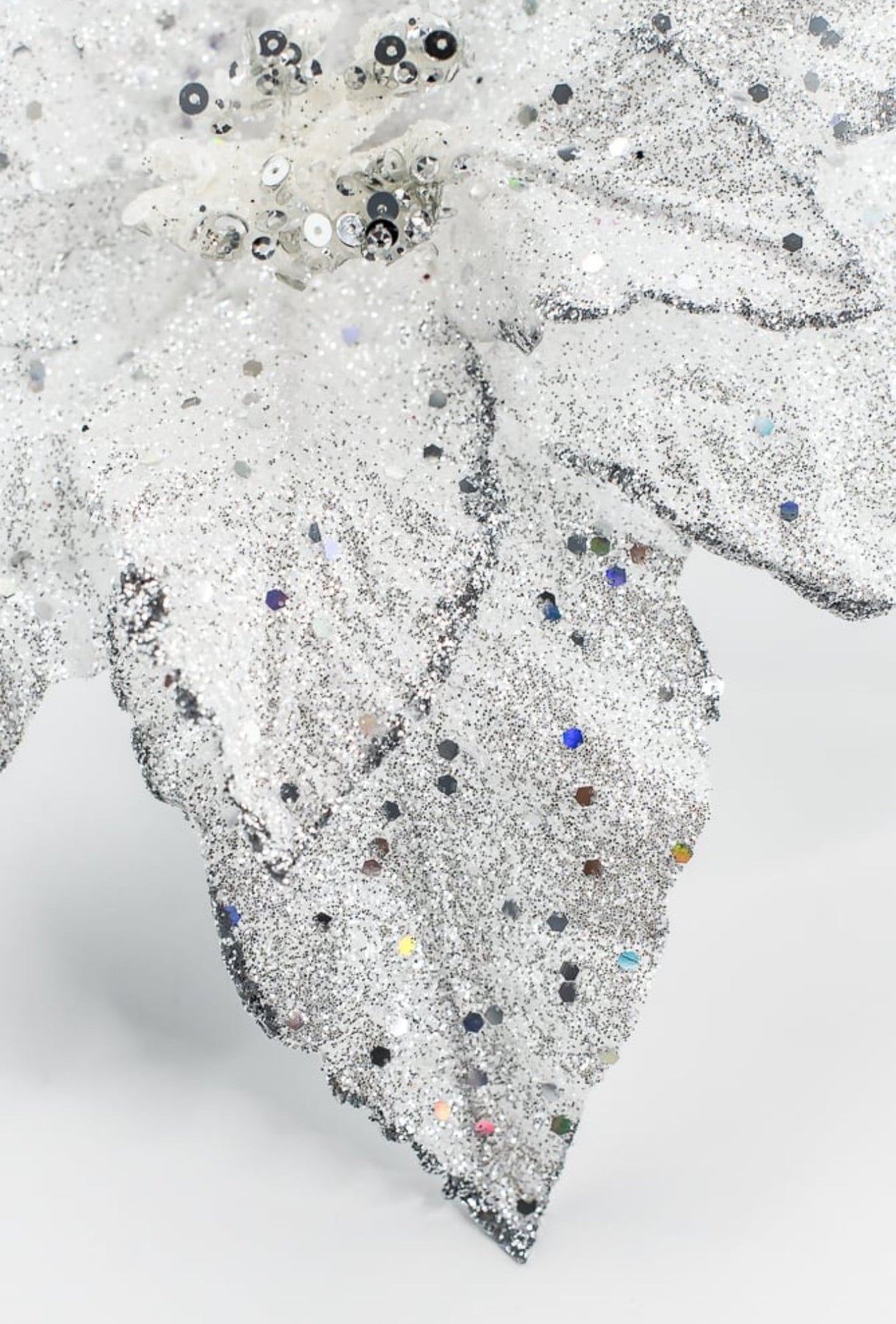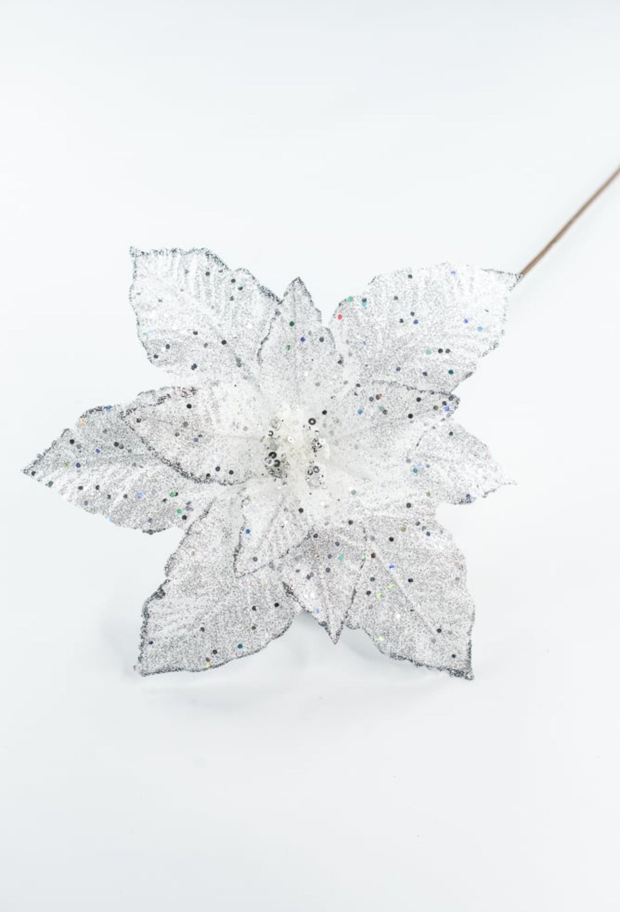 Sequin Glitter Poinsettia Spray, 21", Platinum