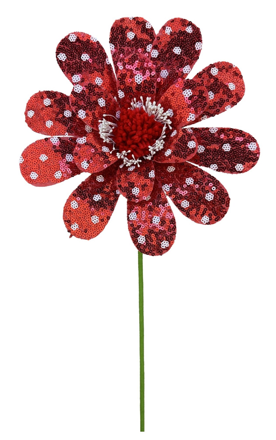Red and white polka dot flower stem. Sequins