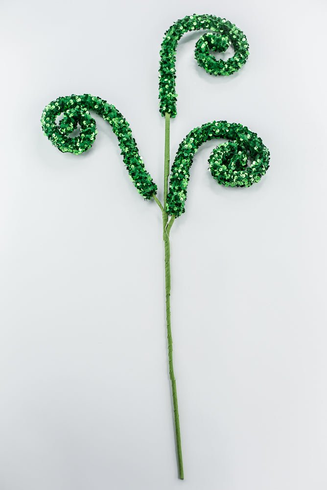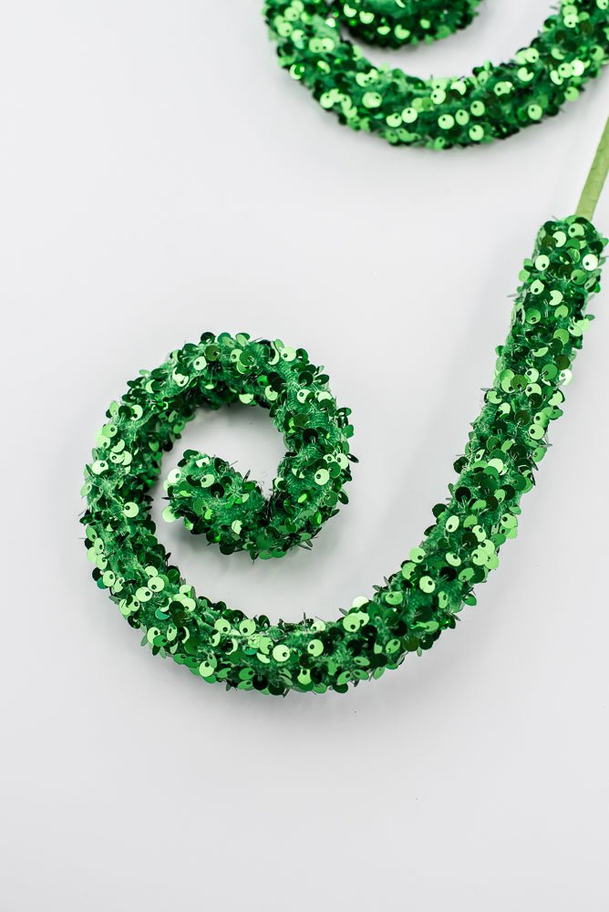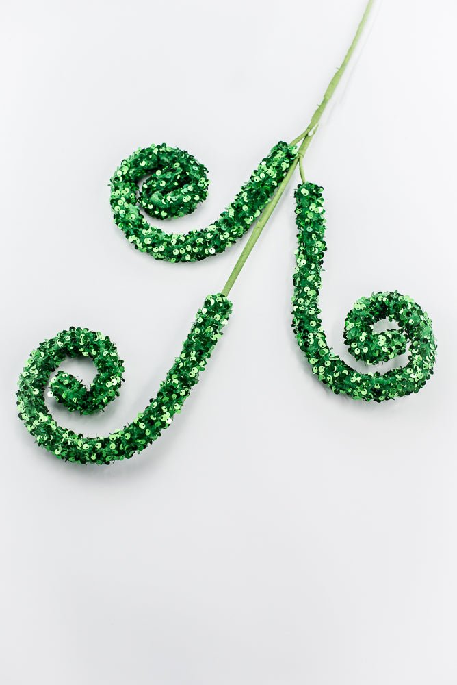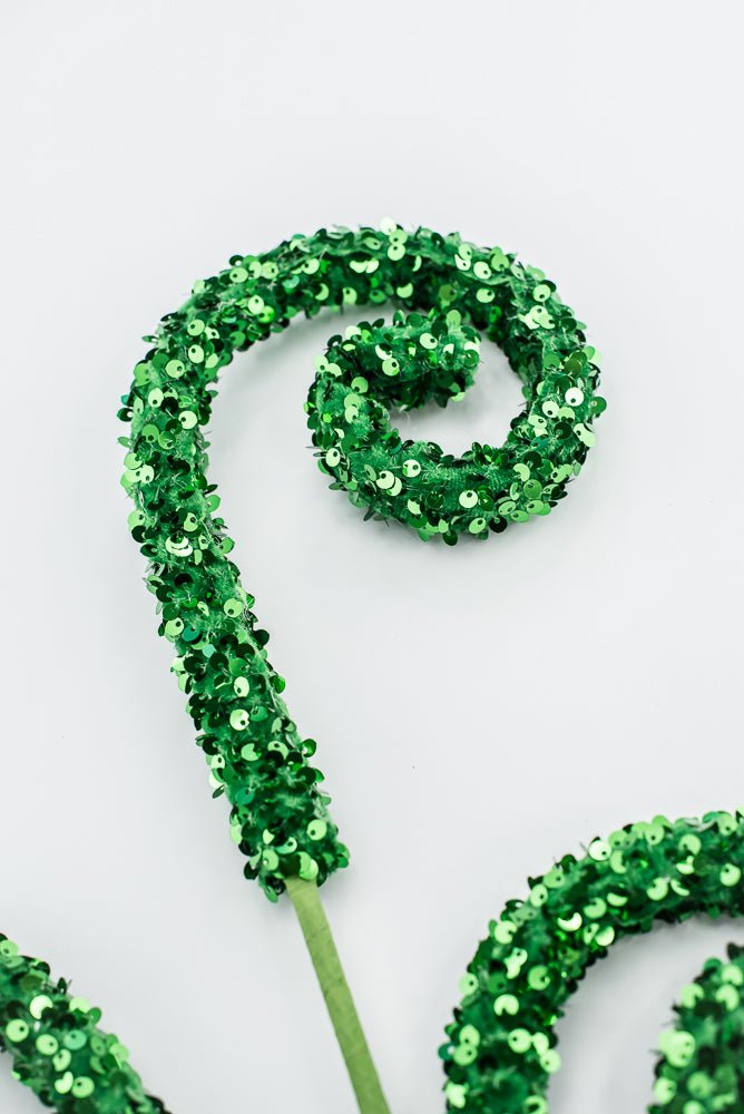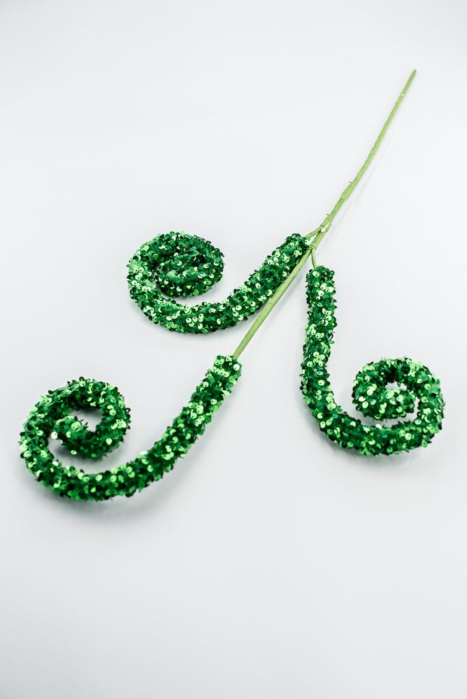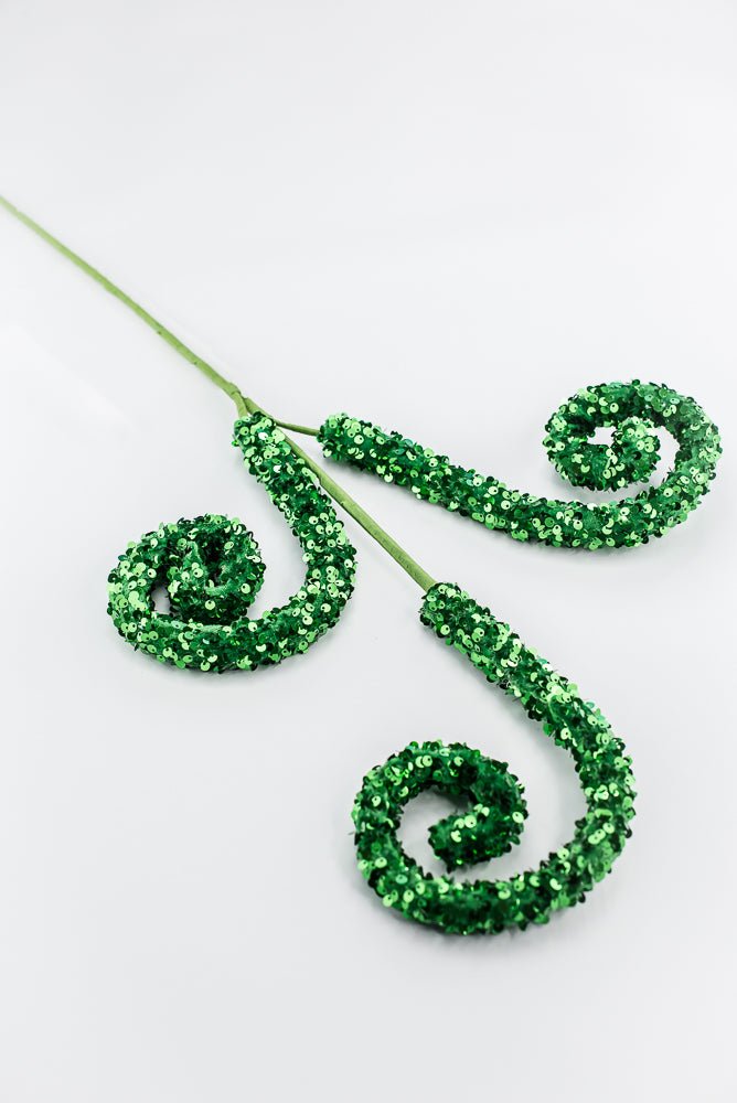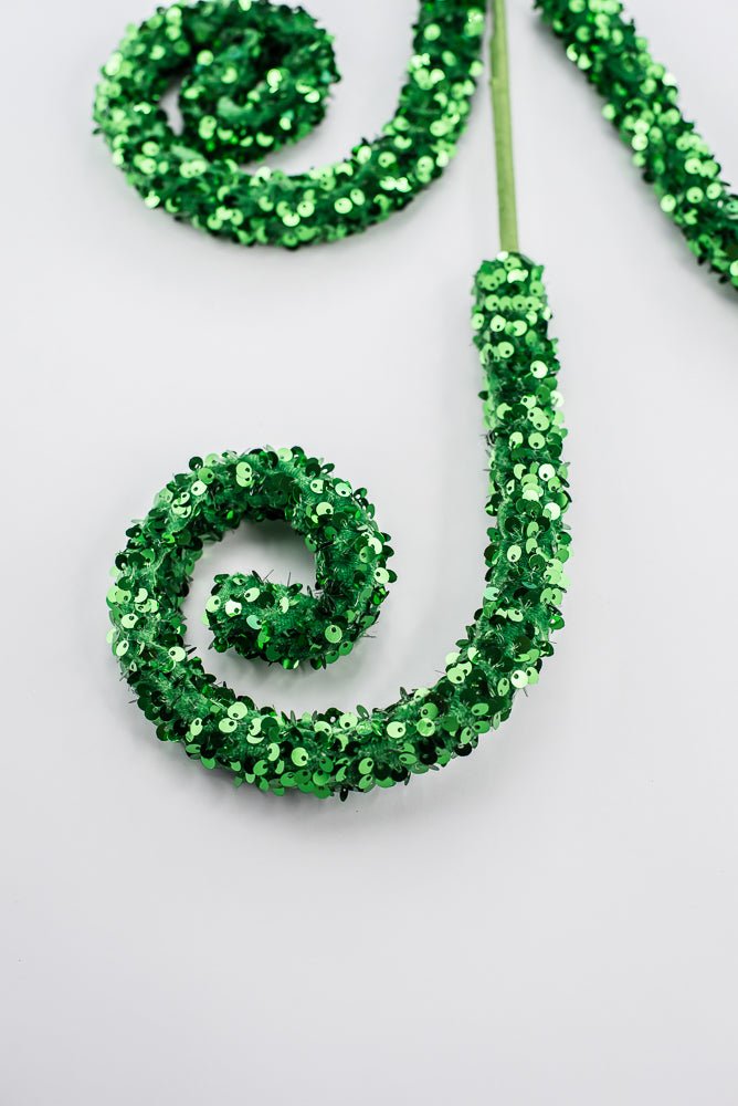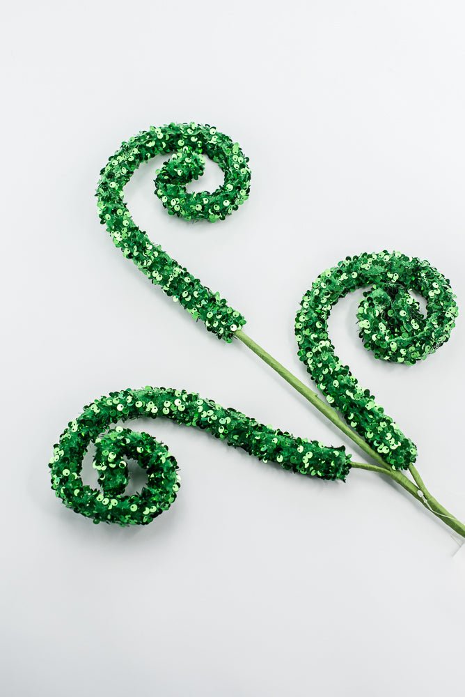 Green Sequin Curly Spray. Wired for bending and shaping.