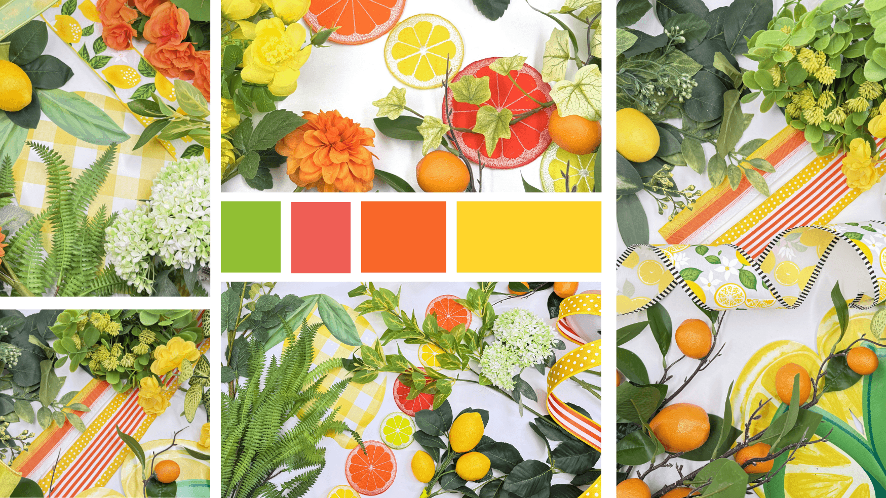 Vibrant Citrus Floral bow bundle x 4 wired ribbons