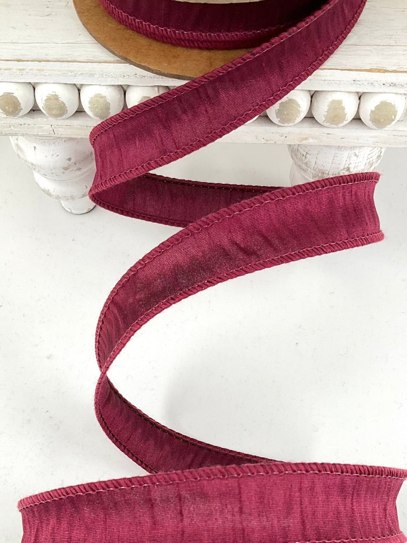 1" Wired Dupioni Ribbon | Wine | 10 Yard Roll