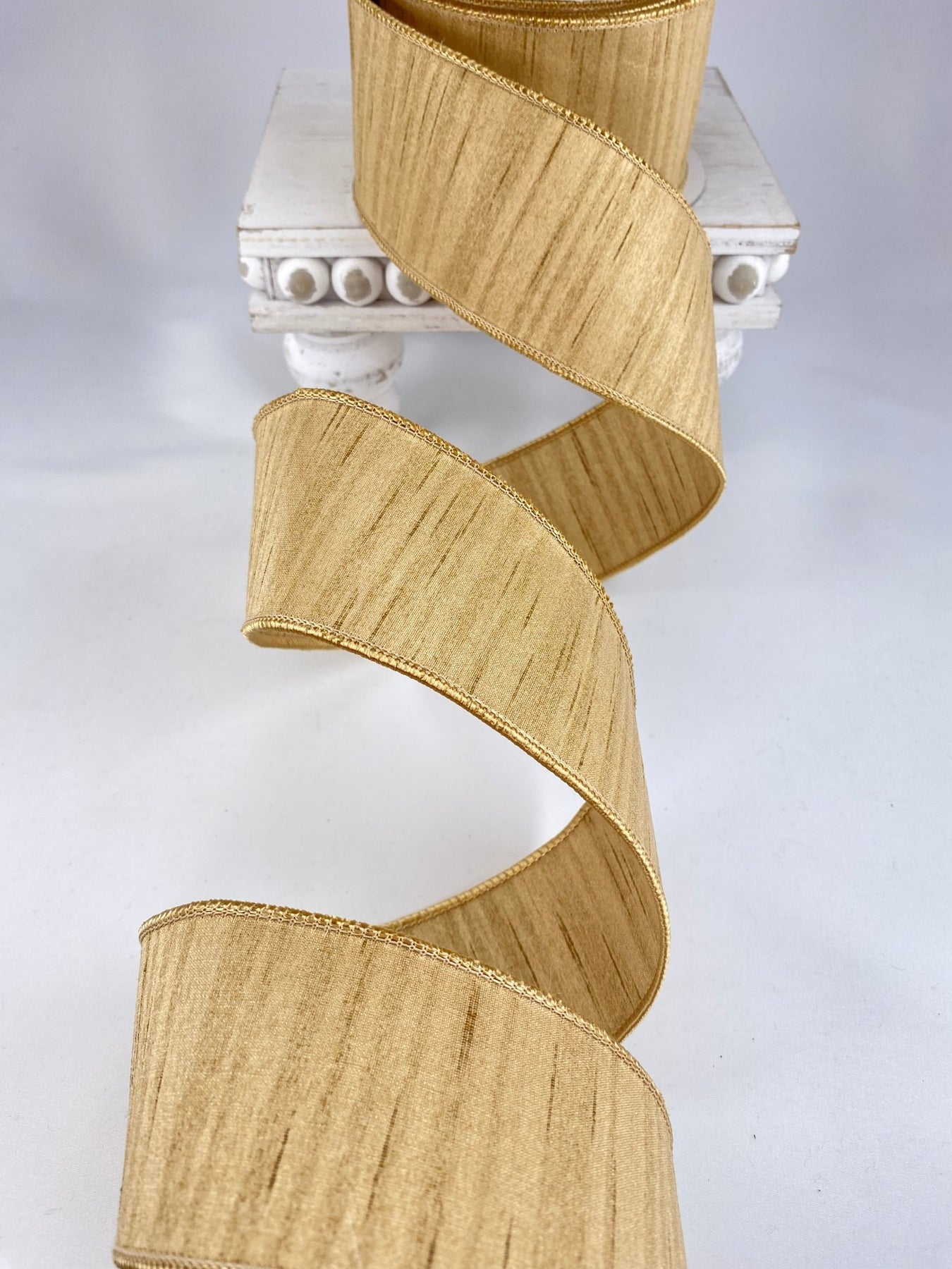 Gold Shimmering Silk Farrisilk Wired Ribbon - 2.5"