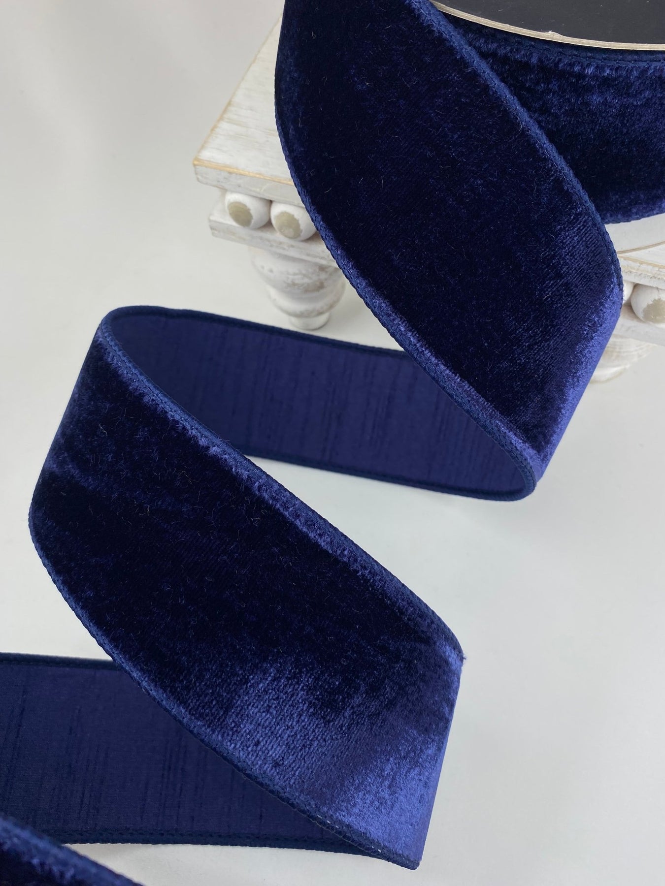 Navy Blue Velvet Farrisilk Wired Ribbon - 2.5"
