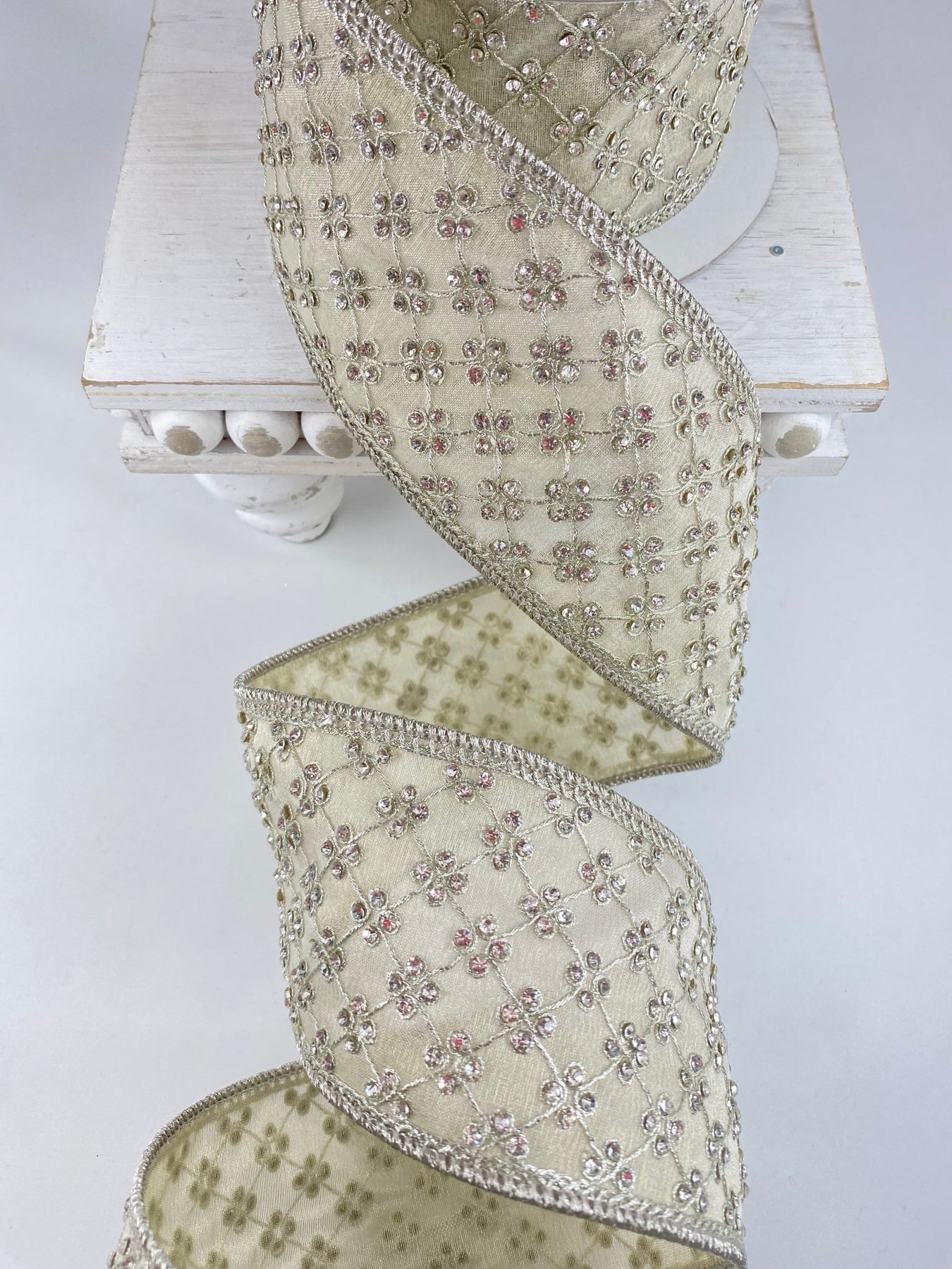 Platinum Lattice Diamonds Farrisilk Wired Ribbon - 3" - Greenery MarketRK796 - 51