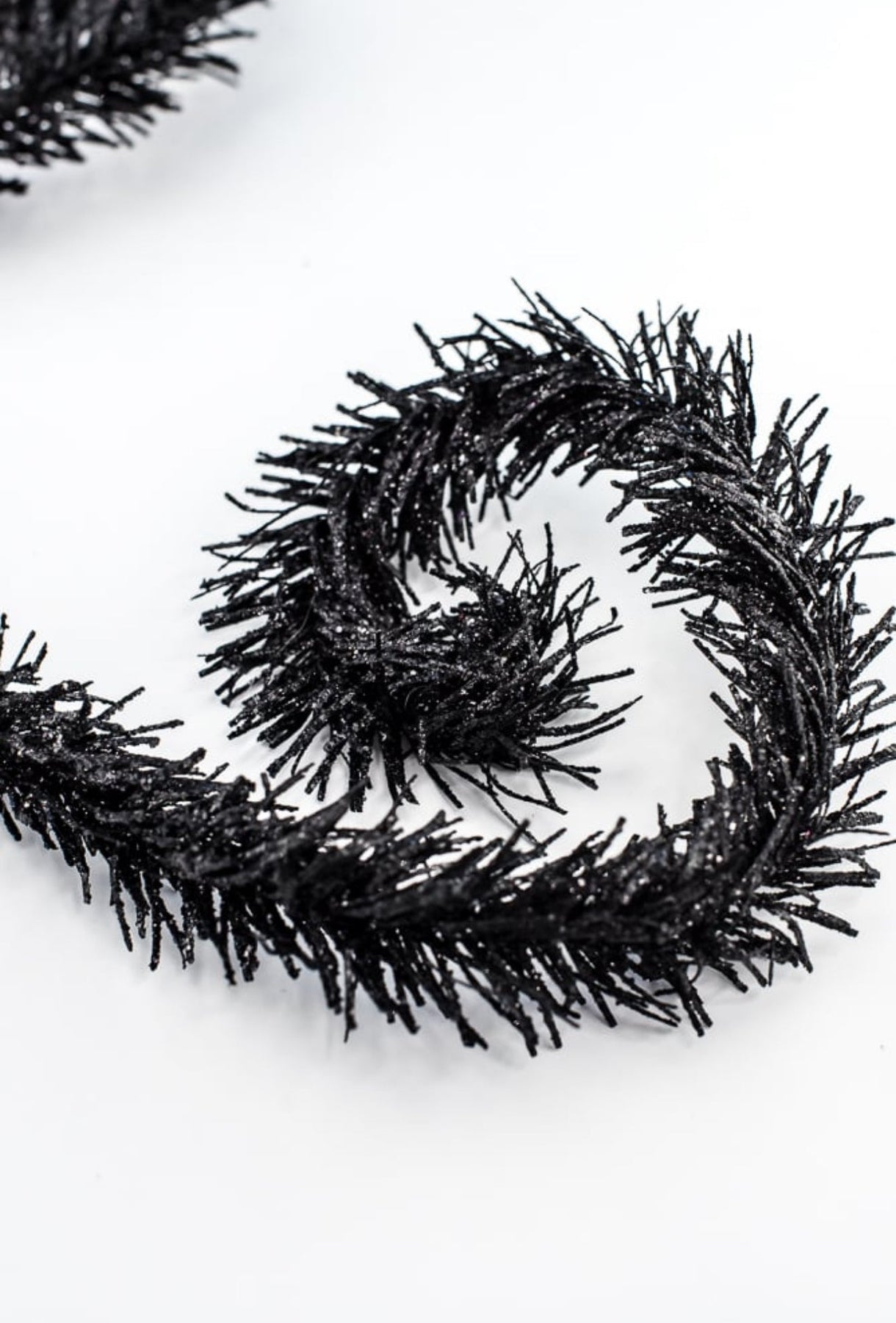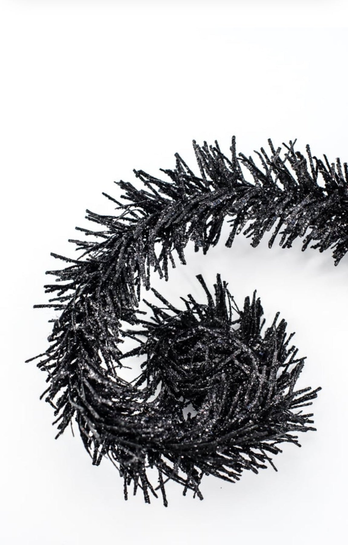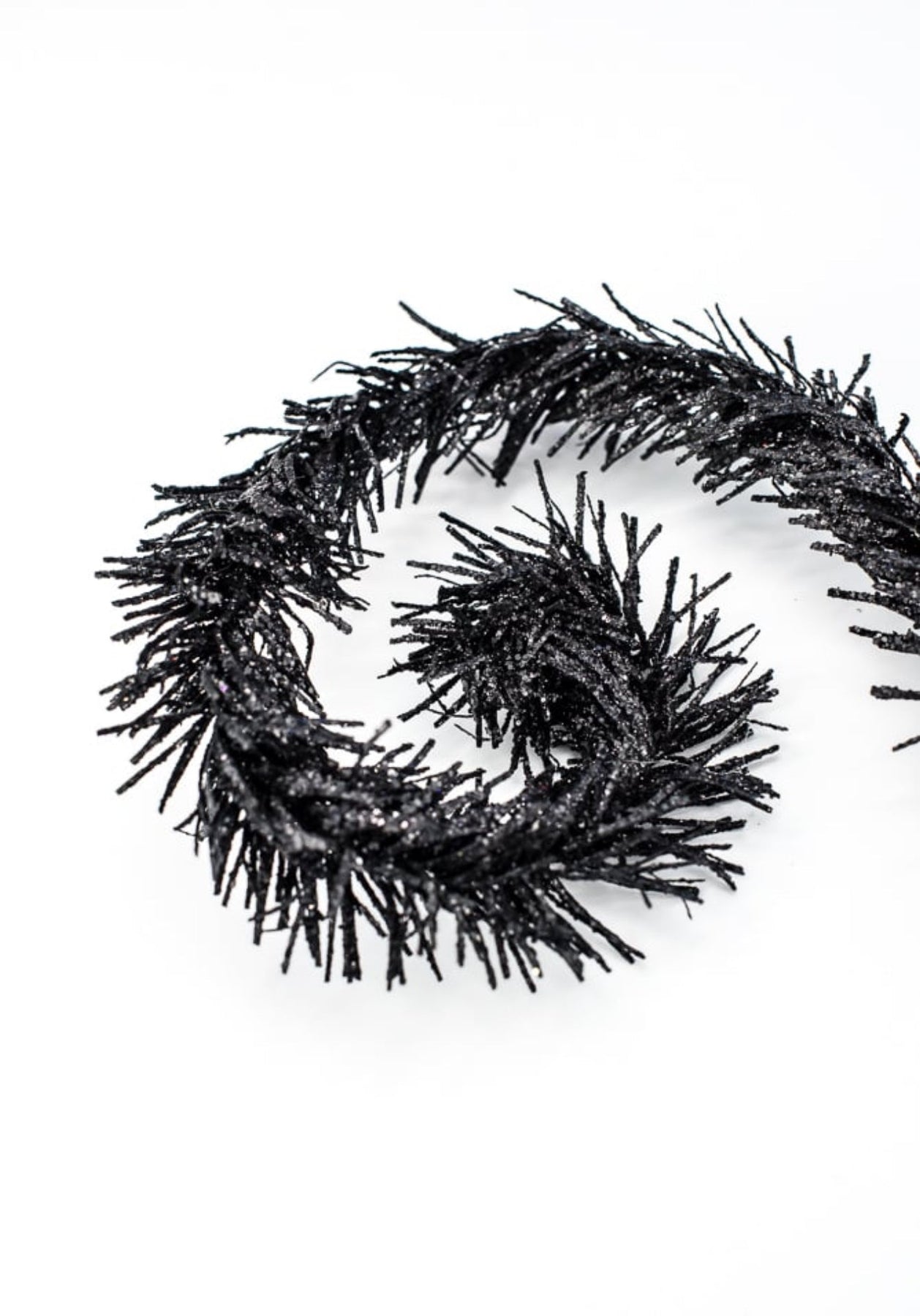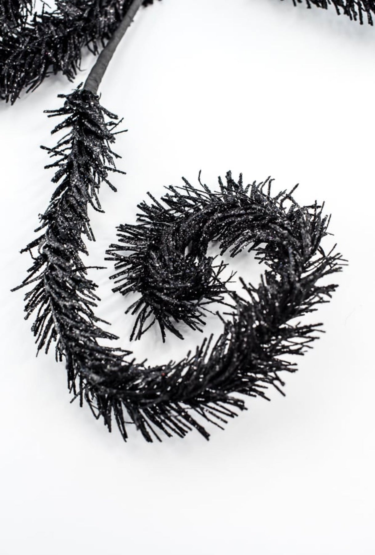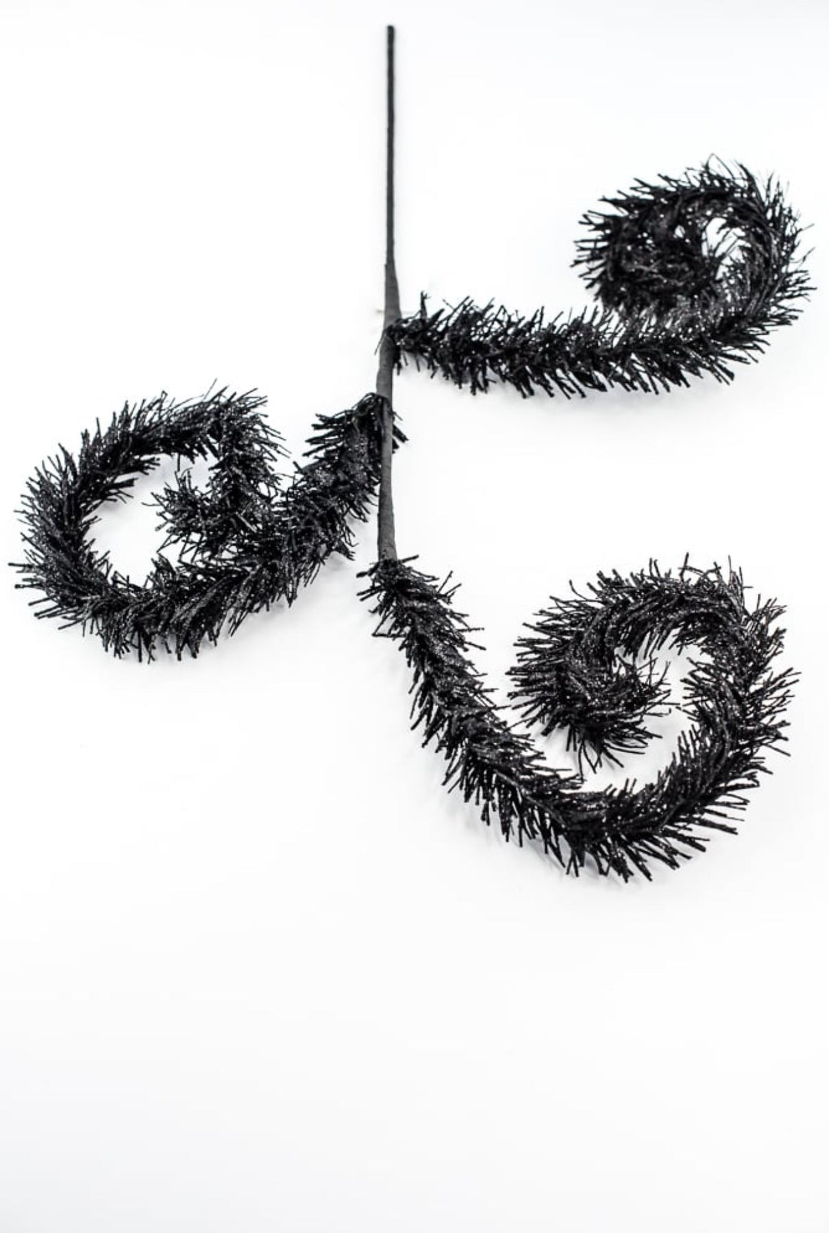 Black, Sparkling, Fuzzy Spiral Curly Spray. Wired for bending and shaping.