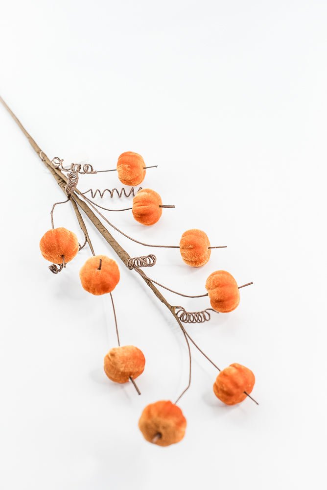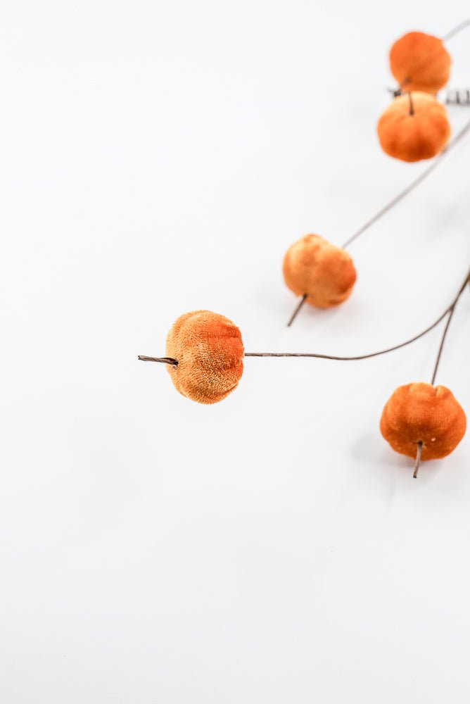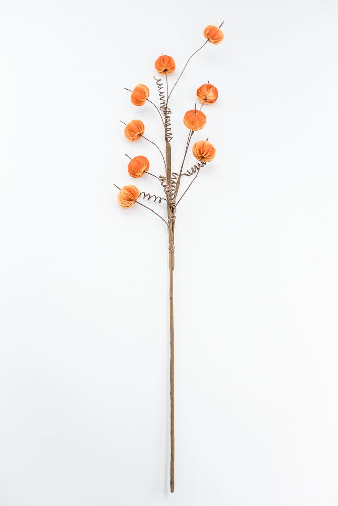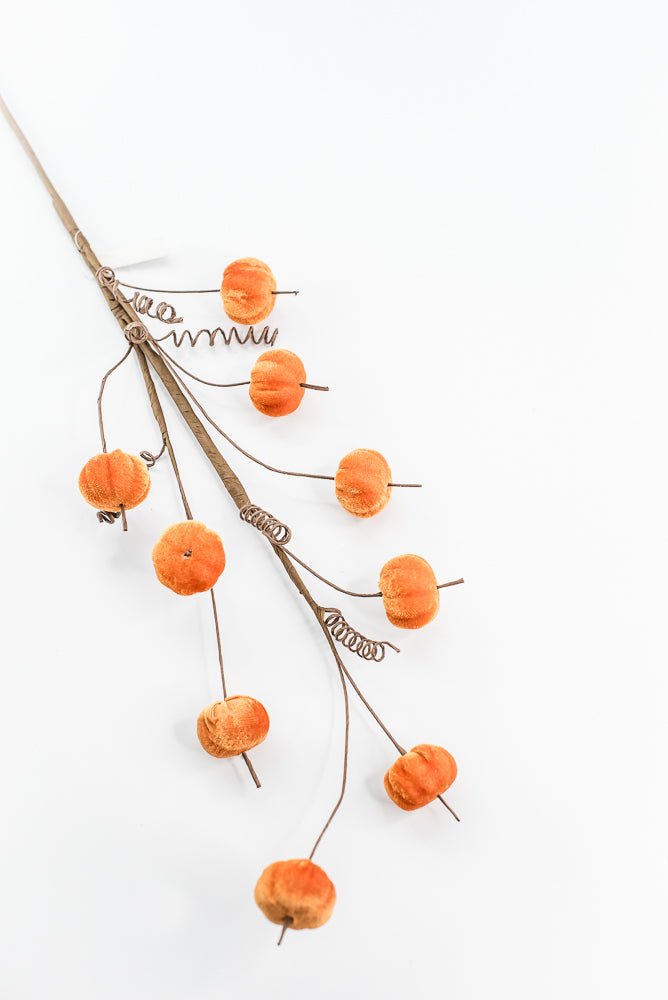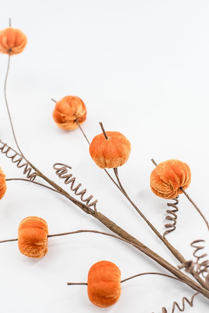 30" Orange Mini Faux velvet Pumpkin Spray