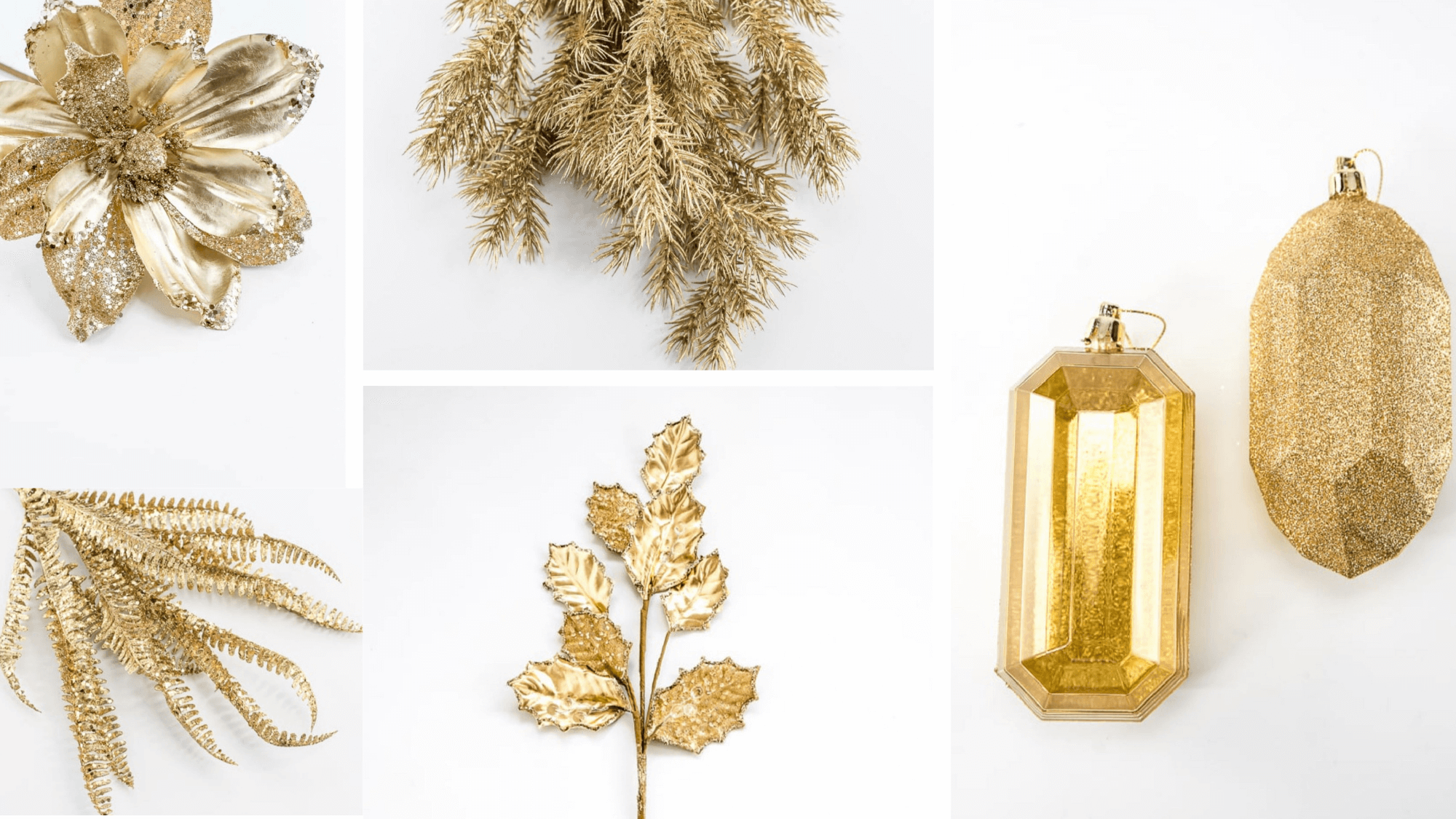 Infuse your holiday decor with a luxurious shimmer. Our Gold Holiday Collection features a stunning array of gold artificial flowers, faux greenery, beautiful ornaments, and gorgeous ribbon. Create an elegant and warm holiday atmosphere with shimmering accents perfect for your Christmas tree, mantel, or centerpiece.