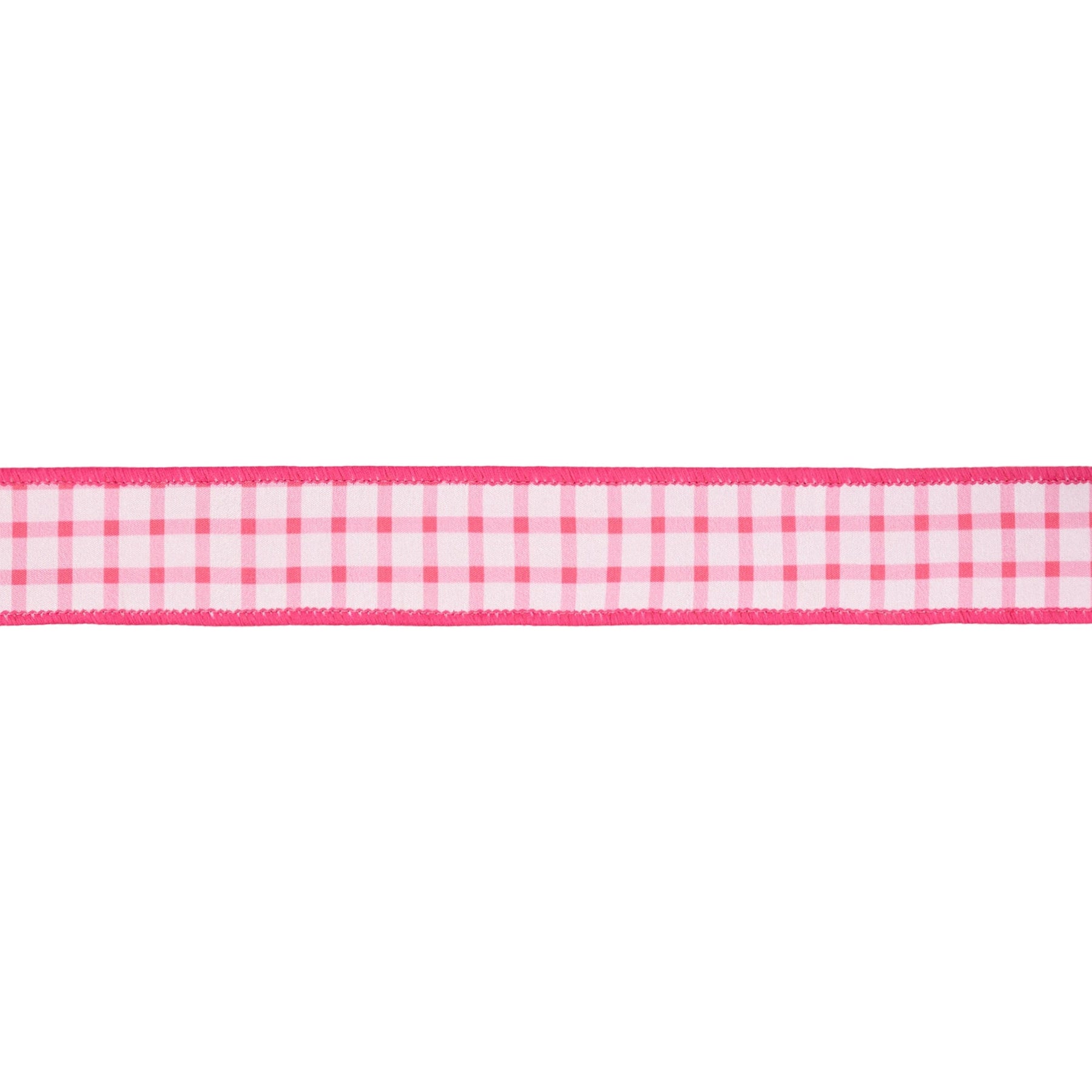 Pink Coral Gridlines on White with Coral Backing Wired Dupioni Ribbon