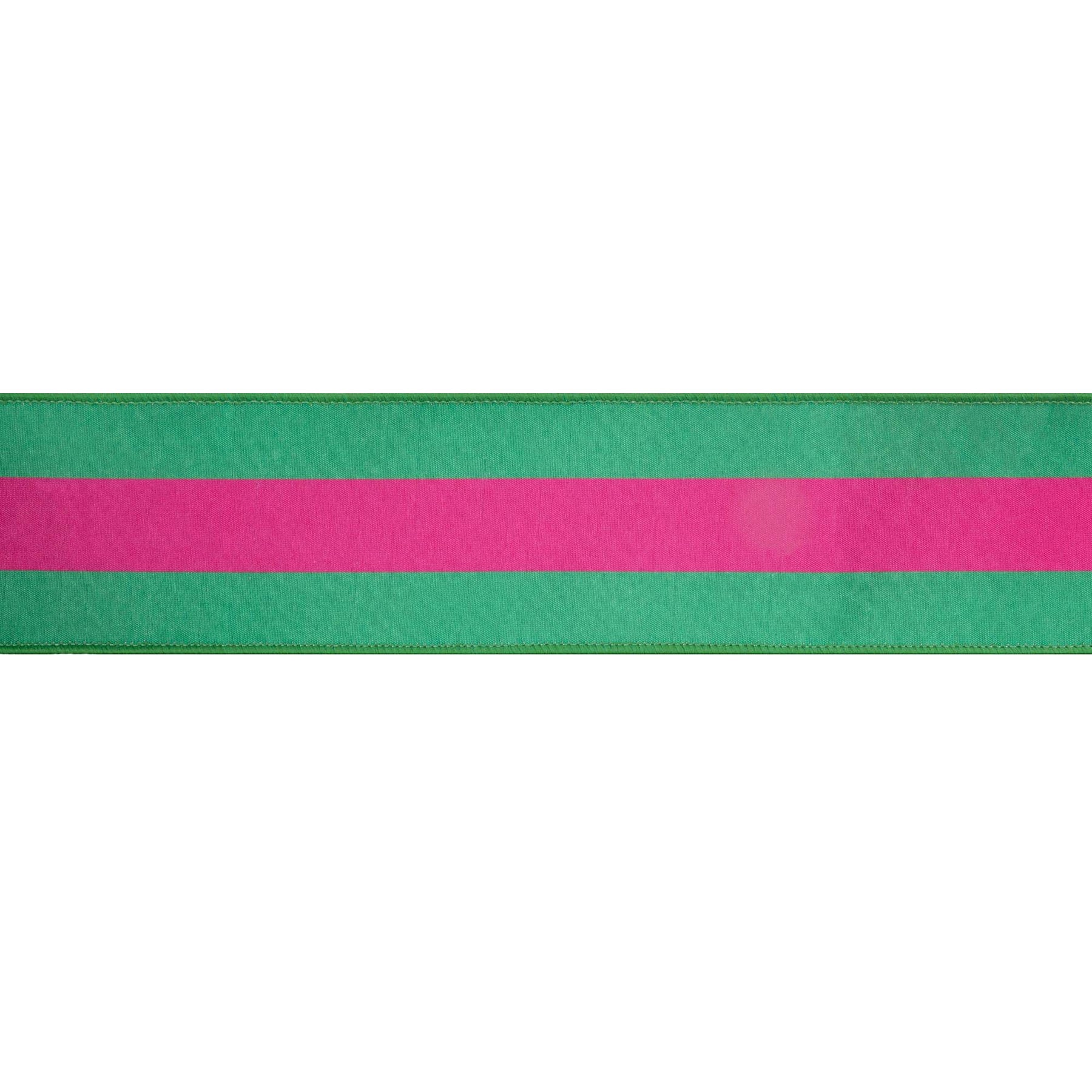 Hot Pink & Green Stripe with Pink Backing Wired Dupioni Ribbon