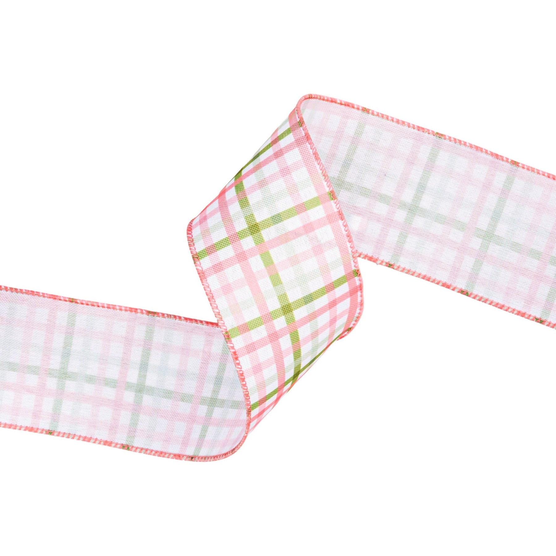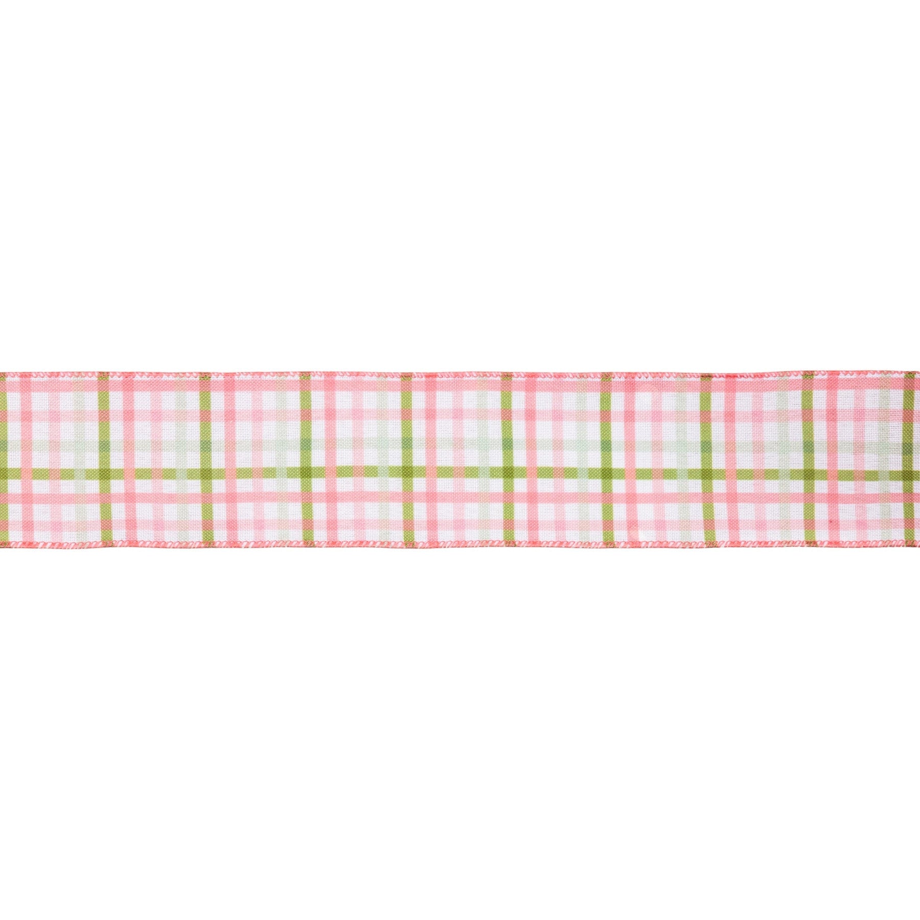 Pink and Green Checked Plaid Wired Ribbon