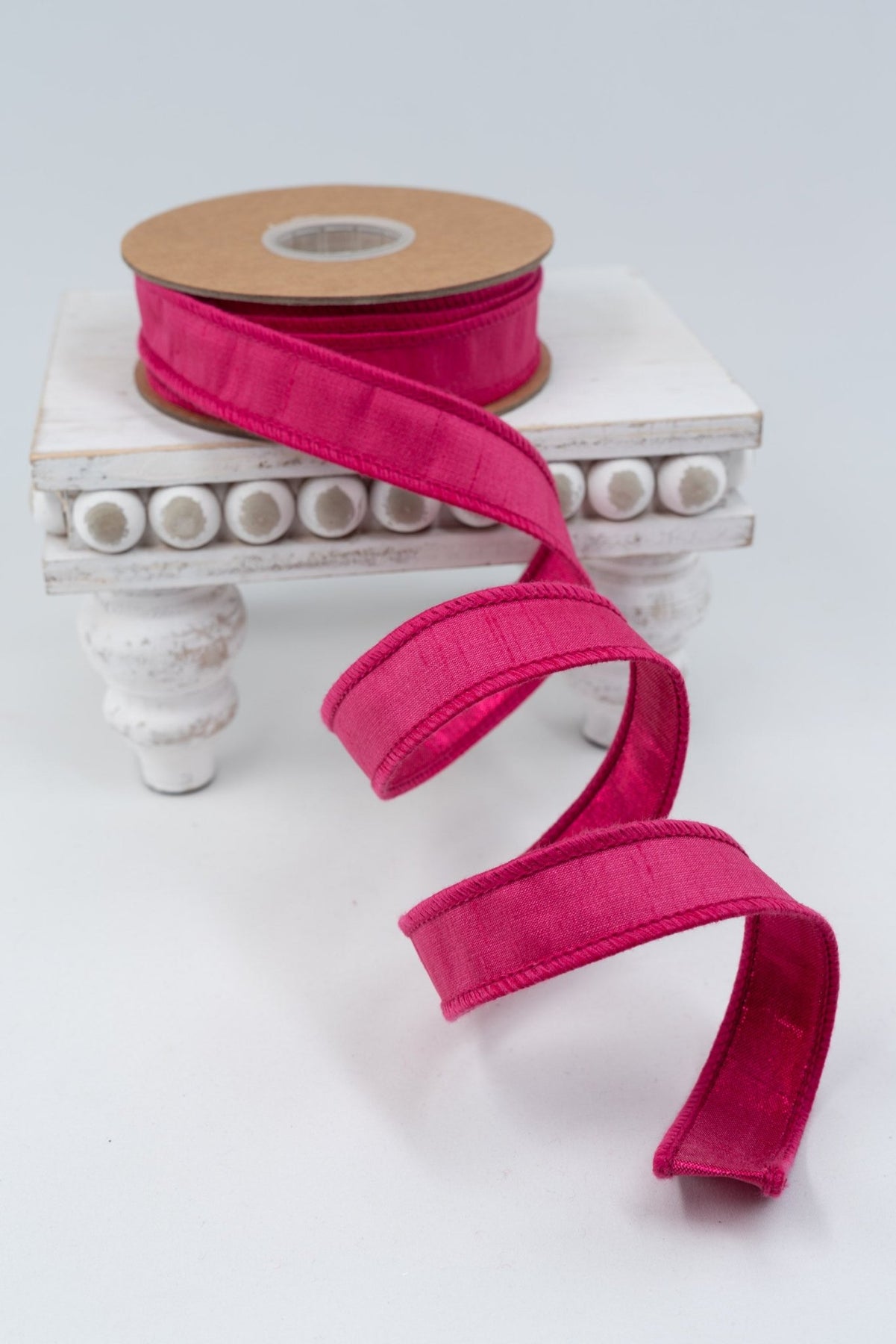 Hot Pink with Metallic Fused Backing Wired Dupioni Ribbon