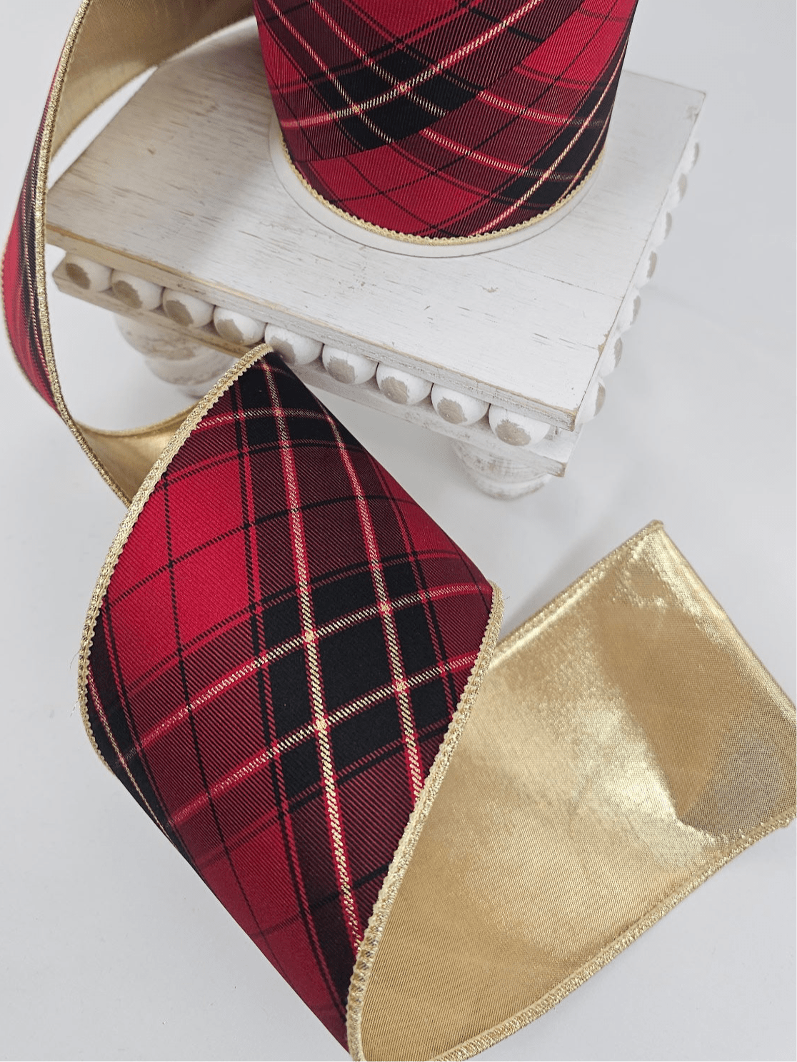 Bias Cut Dbl. Fused Metallic Dupioni Wired Ribbon 4" x 10 yards, Multi Red