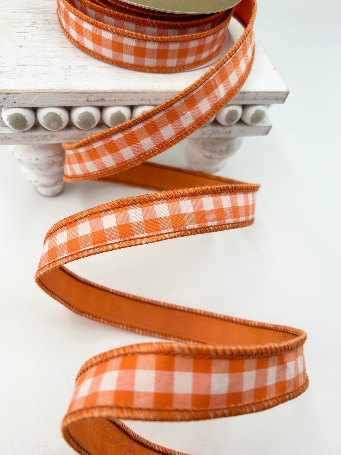 Orange And White Check Taffeta Ribbon 1.5”