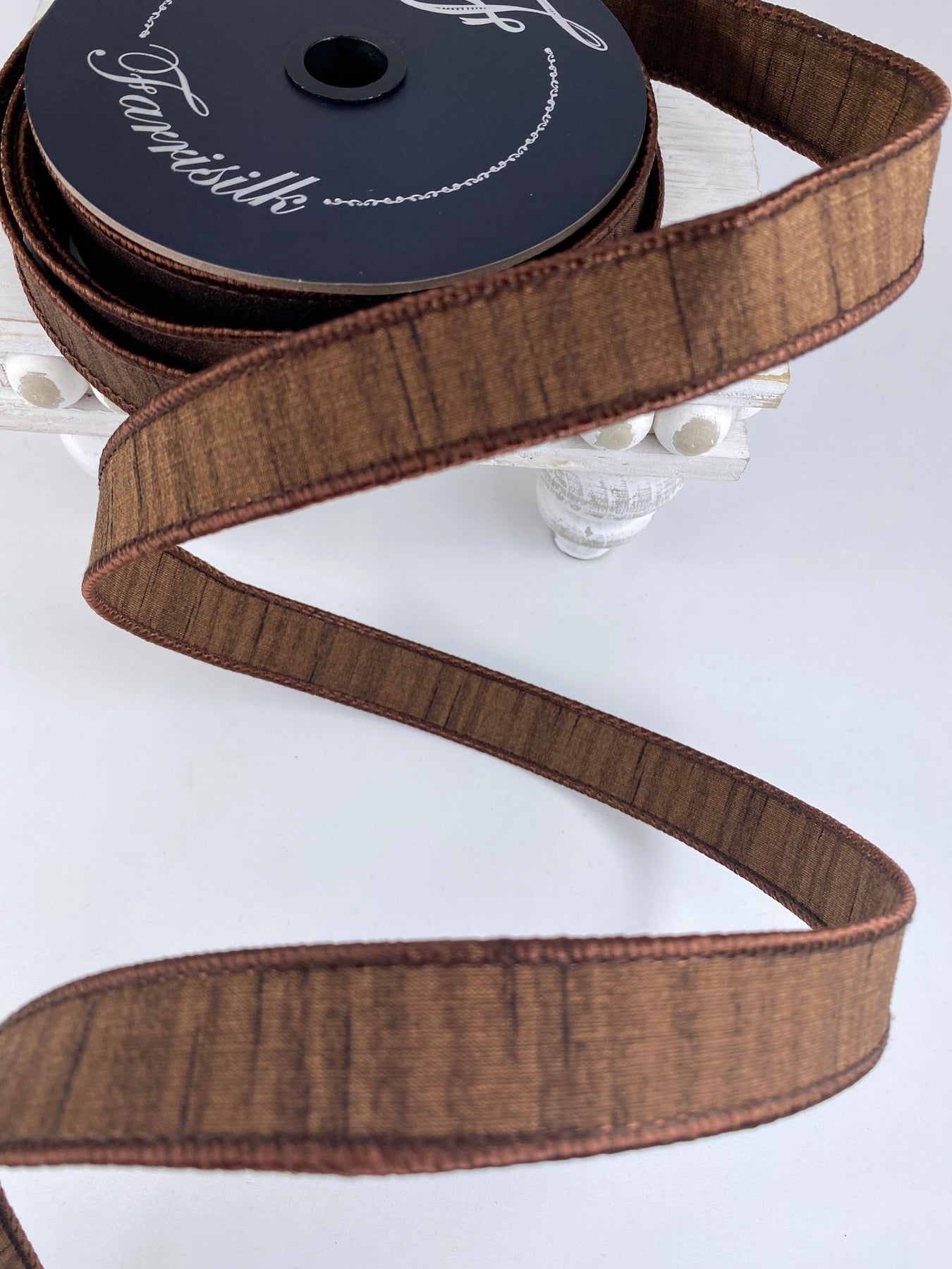 Pecan Shimmering Silk Farrisilk Wired Ribbon - 1"