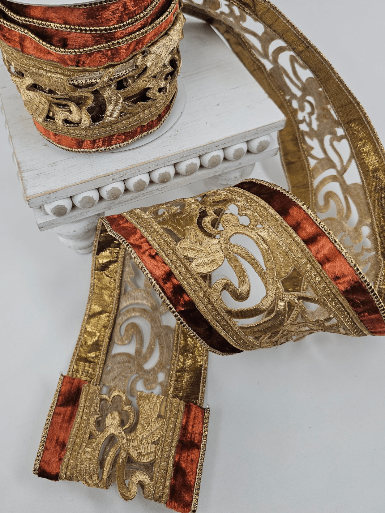 Rust Trim On Velvet Cut-Out Ribbon - 4"