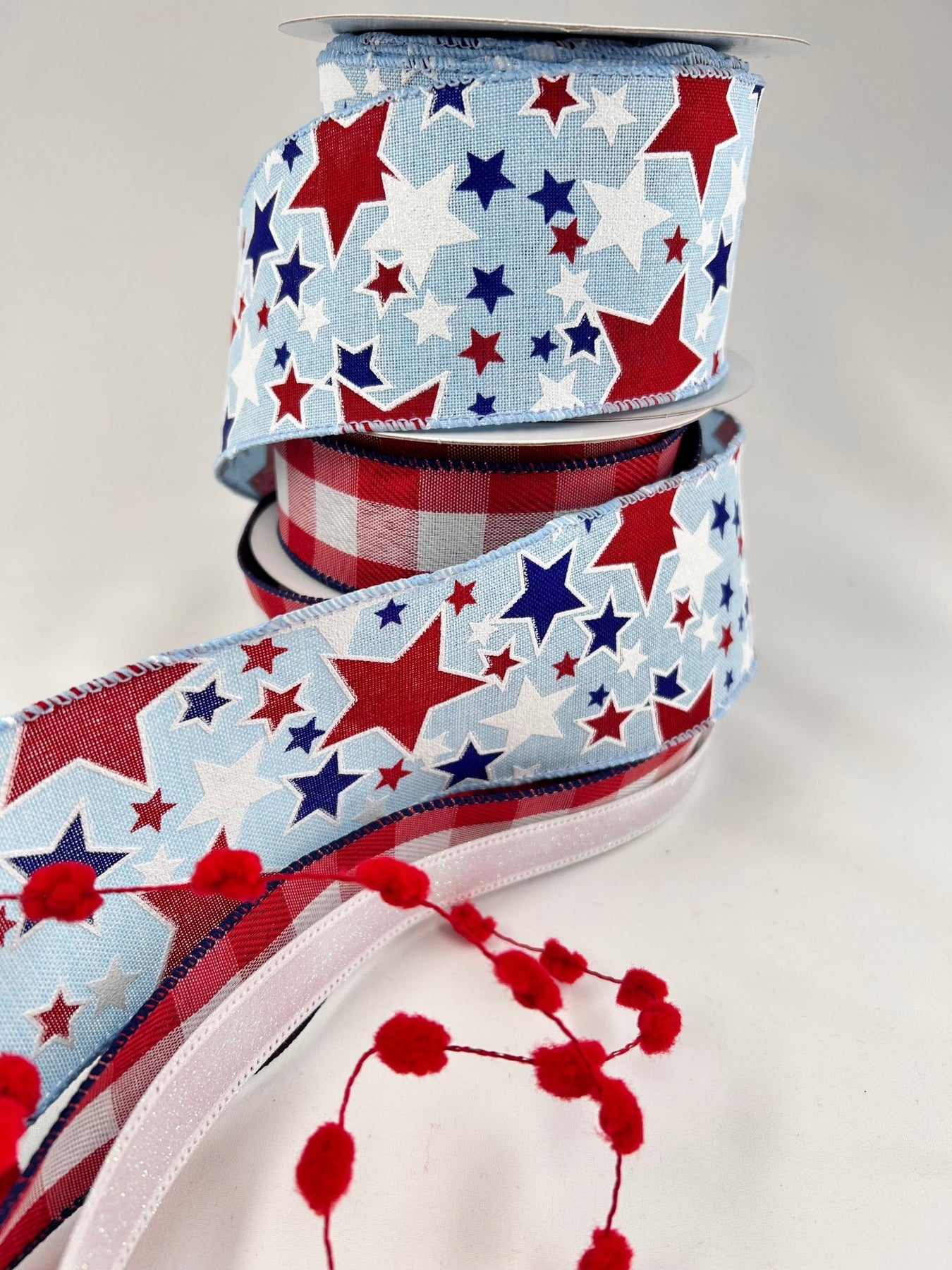 Red, white, and navy blue Patriotic stars wired bow making bundle.