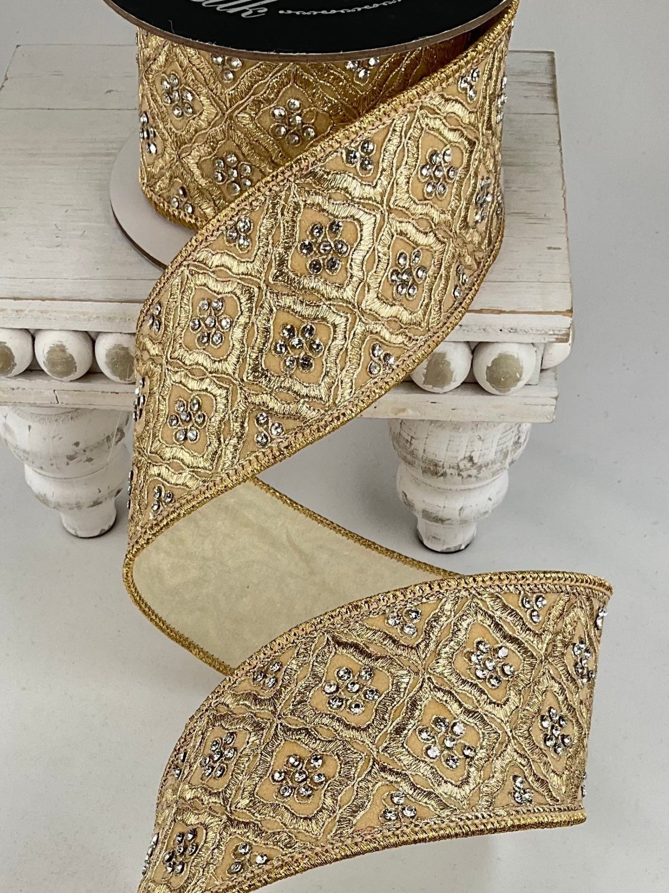 Cream Heirloom Tapestry Farrisilk Wired Ribbon