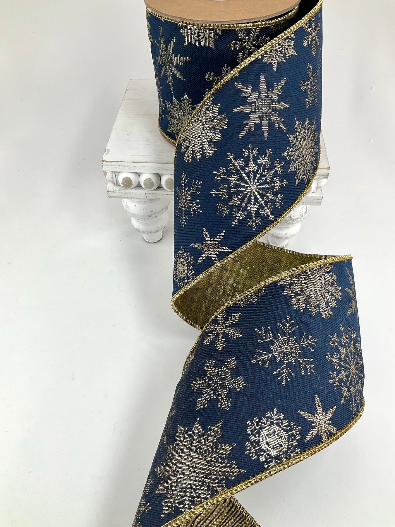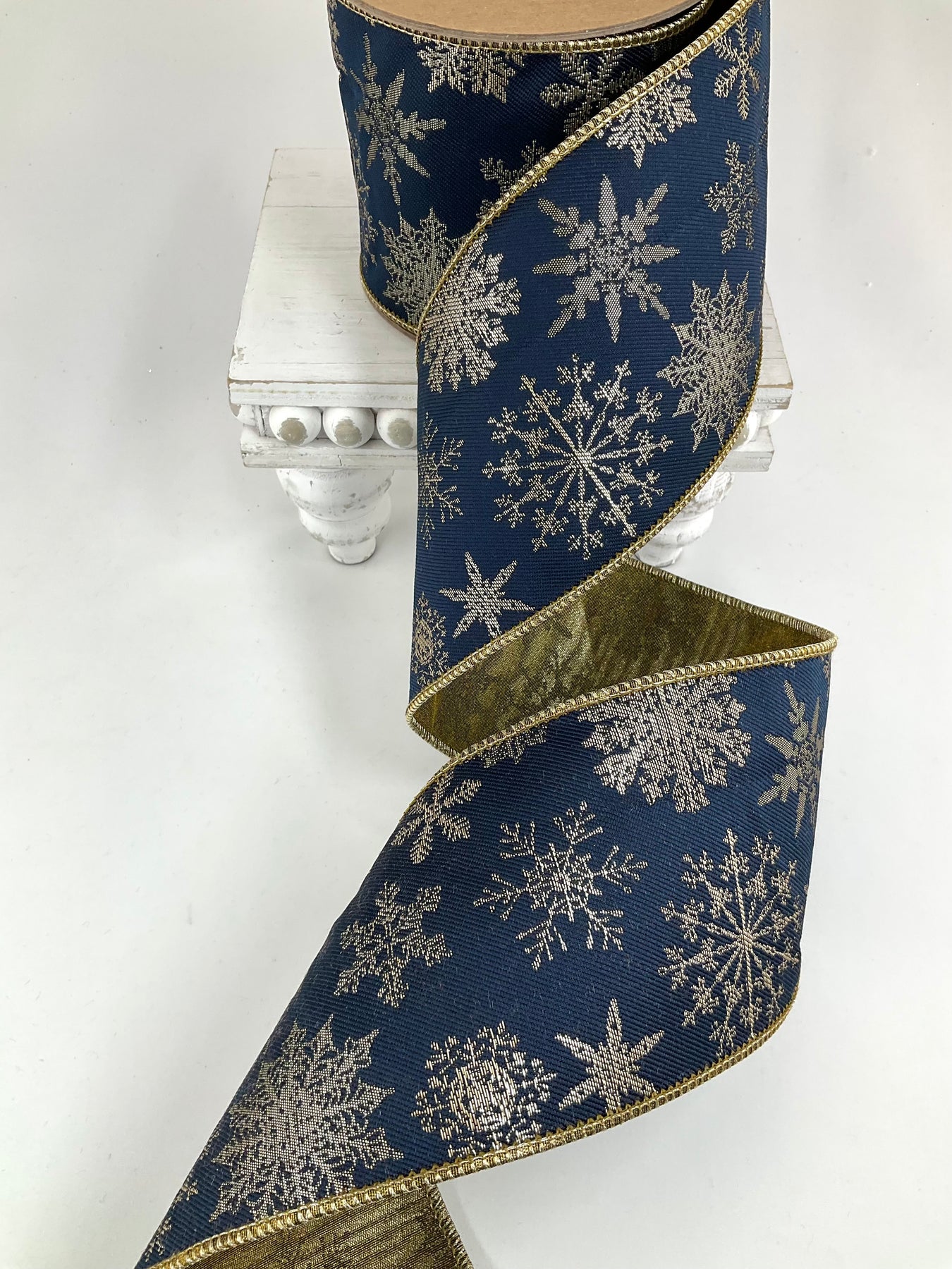 4" Wired Jaquard Ribbon | Blue Snowflake w/ Tissue Backing | 5 Yard Roll