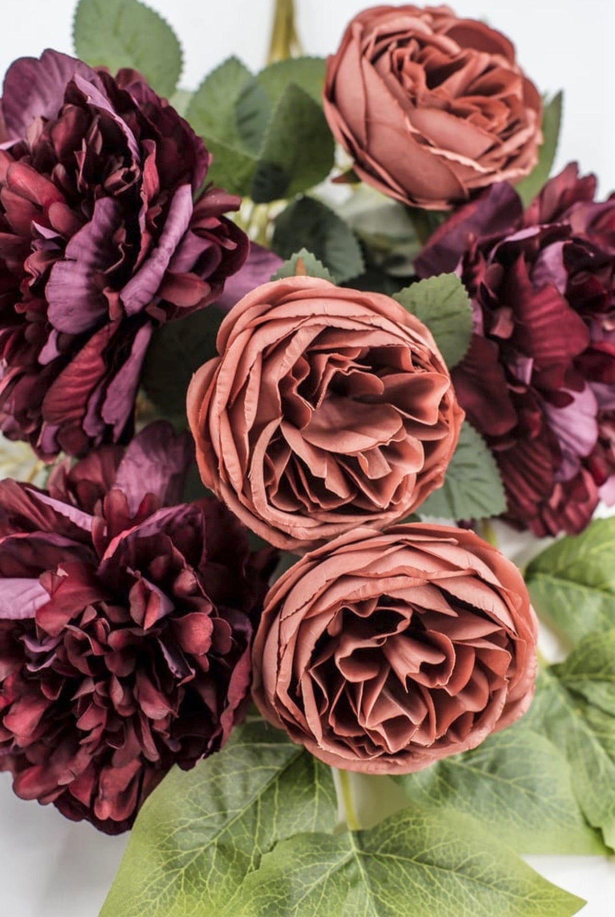 Burgundy Red & Salmon Peony Cabbage Rose Bush