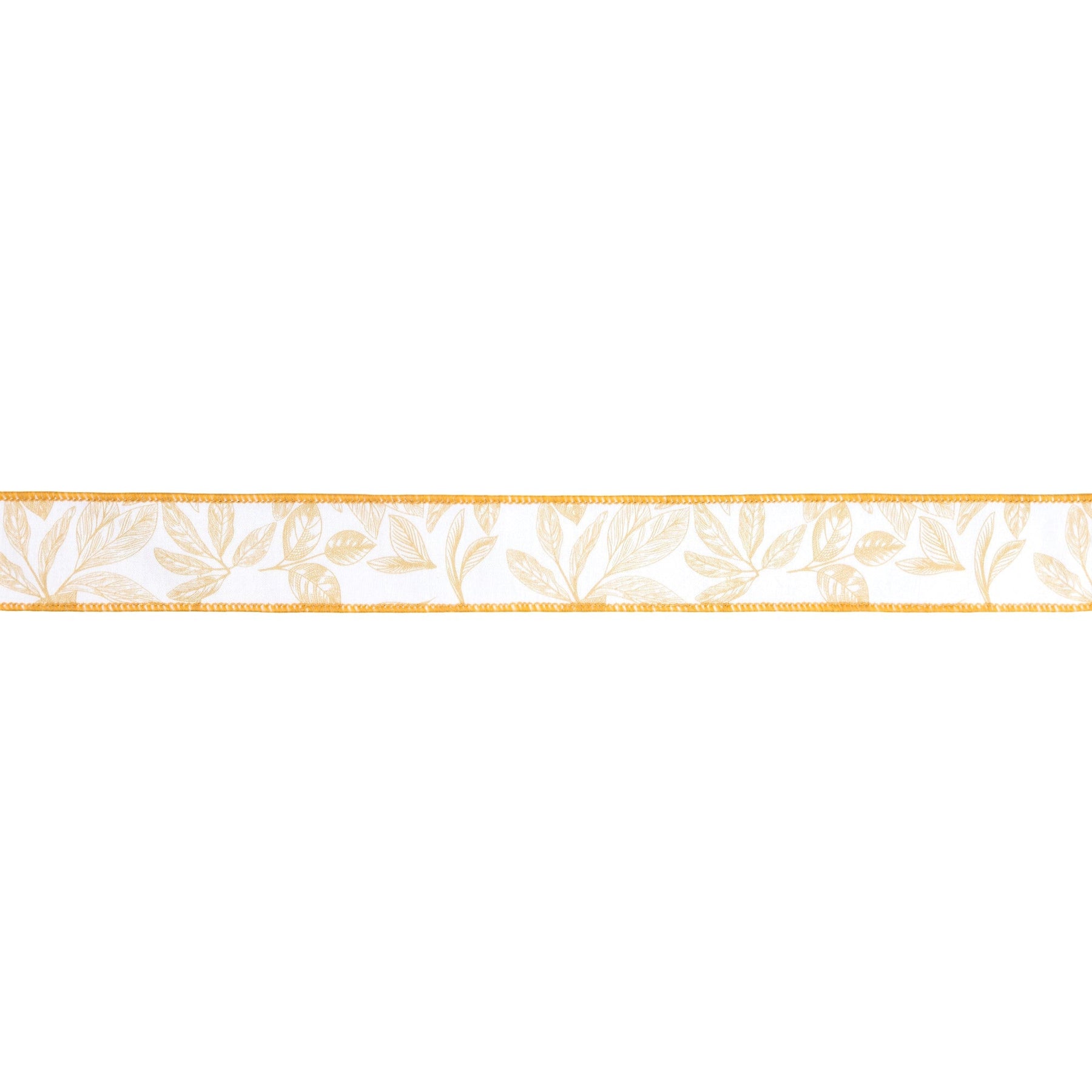 Yellow Leaves On White Wired Dupioni Ribbon - 1.5" - Greenery MarketWired Ribbon9382W-662-38E